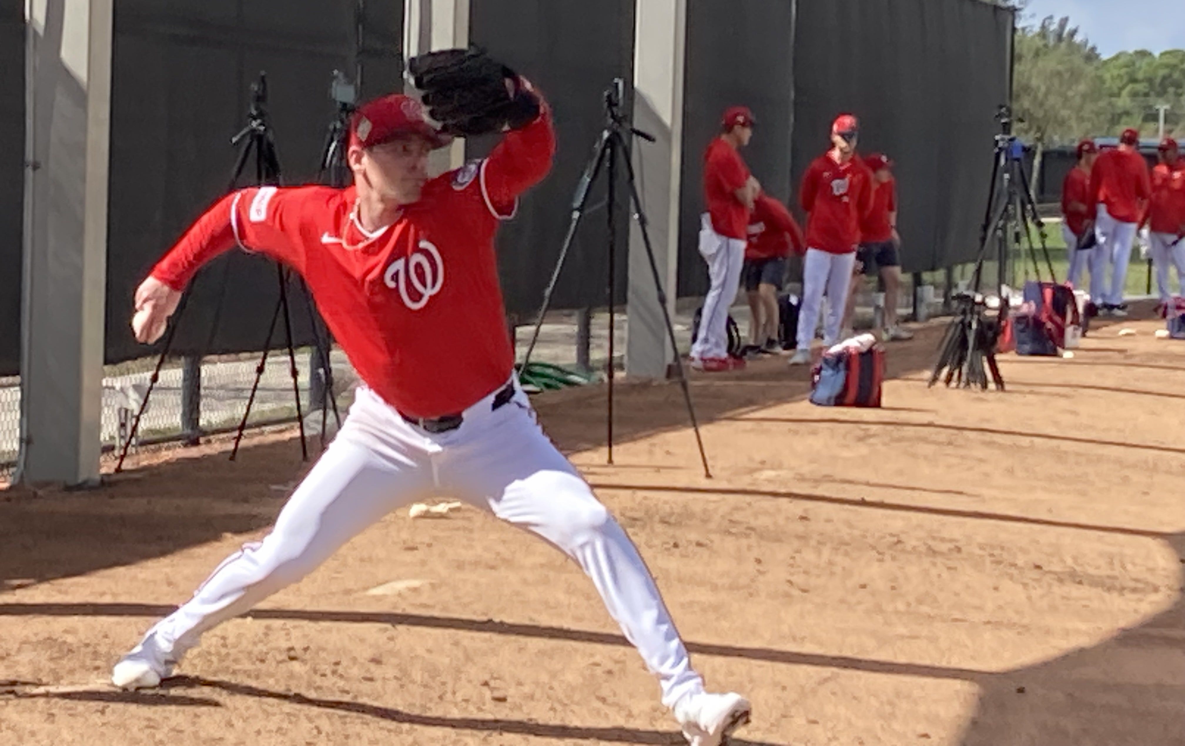 WEST PALM BEACH, Fla. – Drew Smith officially joined the Nationals today, the veteran right-hander’s minor-league deal finally announced by the club two days after he agreed to terms. And he wasted no time getting to work.